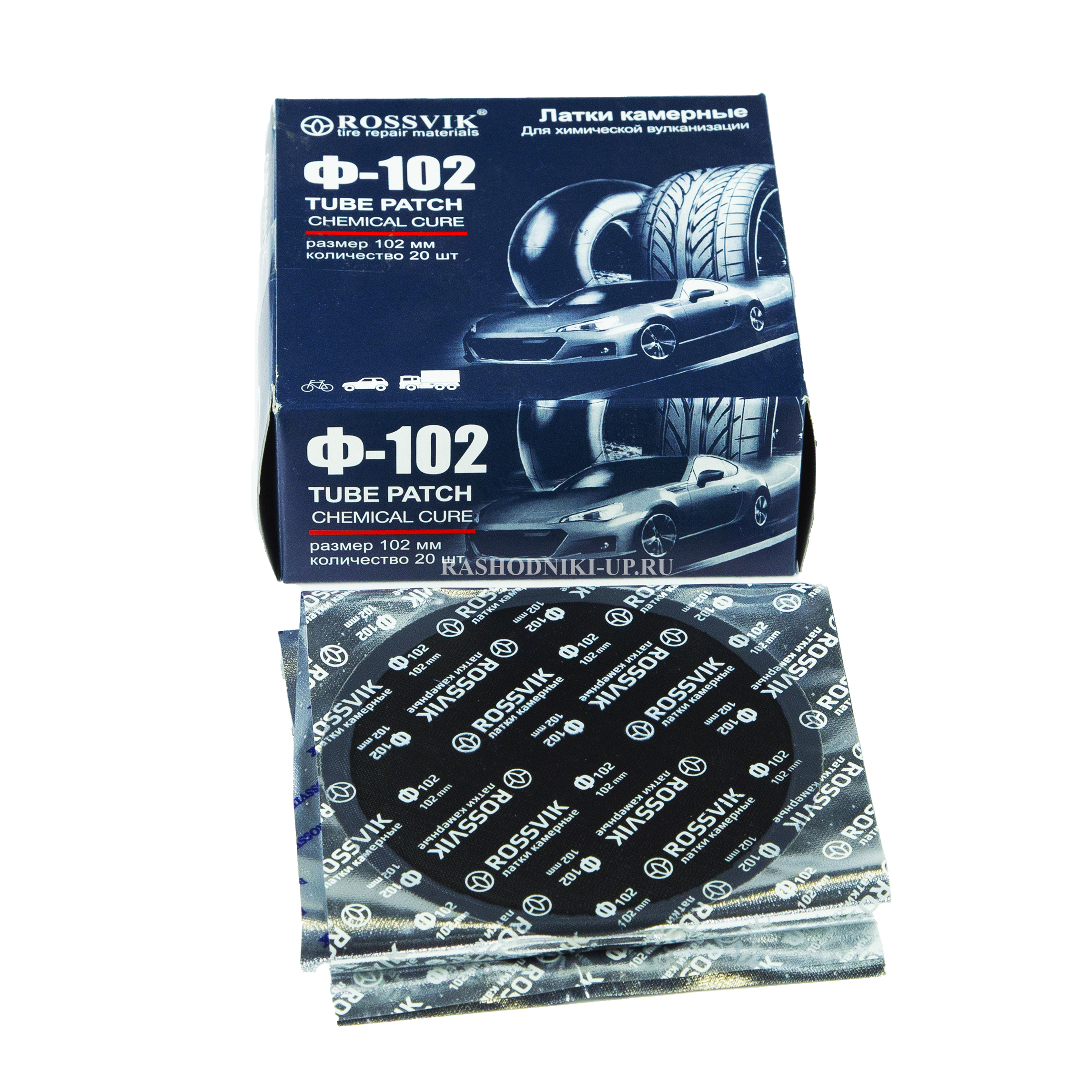 Двухслойные латки Rossvik Ф102, 102 мм (20 шт) применяются для ремонта пневматических камер любых размеров всех видов транспорта: велосипедов, мотоциклов, легковых и грузовых автомобилей, сельскохозяйственной техники.