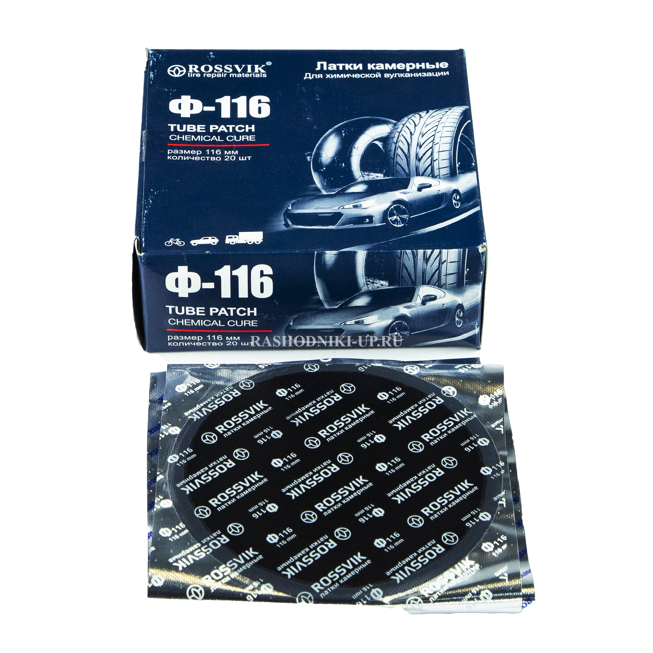 Двухслойные латки Rossvik Ф116, 116 мм (20 шт) применяются для ремонта пневматических камер любых размеров всех видов транспорта: велосипедов, мотоциклов, легковых и грузовых автомобилей, сельскохозяйственной техники.