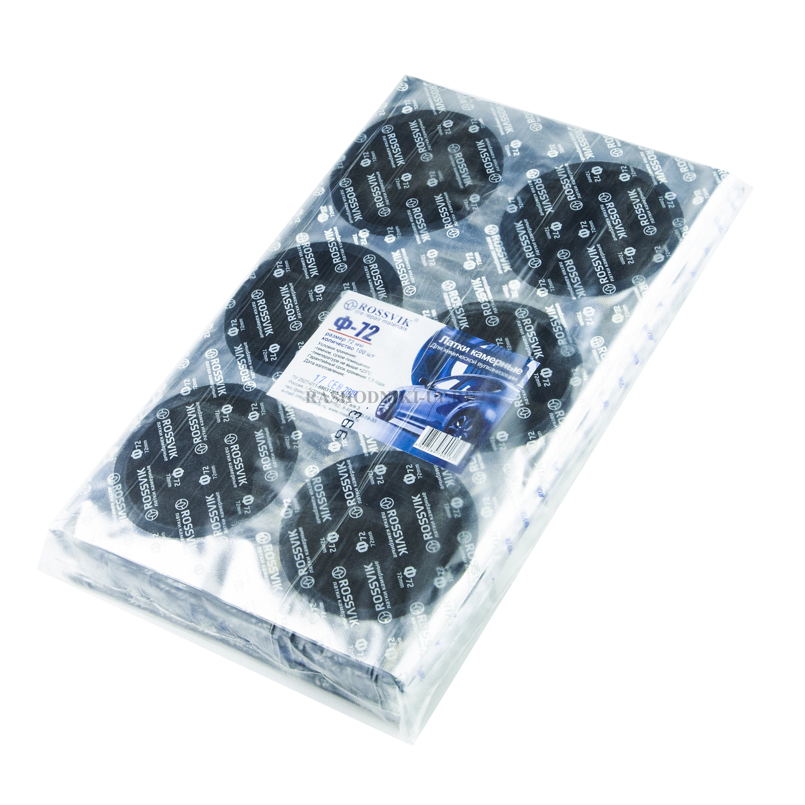Двухслойные латки Rossvik Ф72, 72 мм (100 шт) применяются для ремонта пневматических камер любых размеров всех видов транспорта: велосипедов, мотоциклов, легковых и грузовых автомобилей, сельскохозяйственной техники.