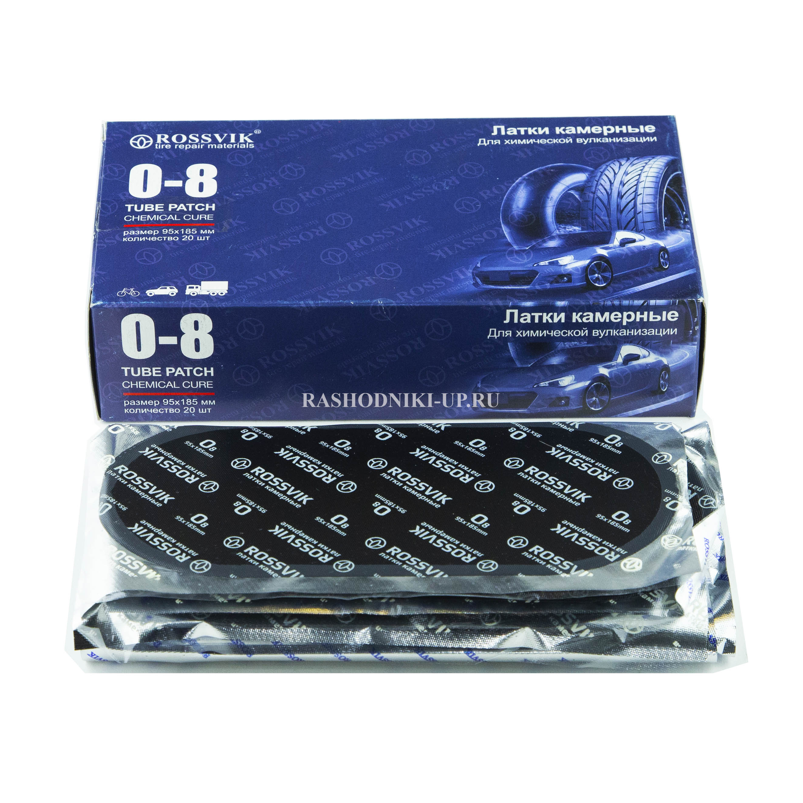 Овальные латки Rossvik О-8, 95Х185мм (20шт) предназначены для ремонта разрывов автомобильных камер любого типа.