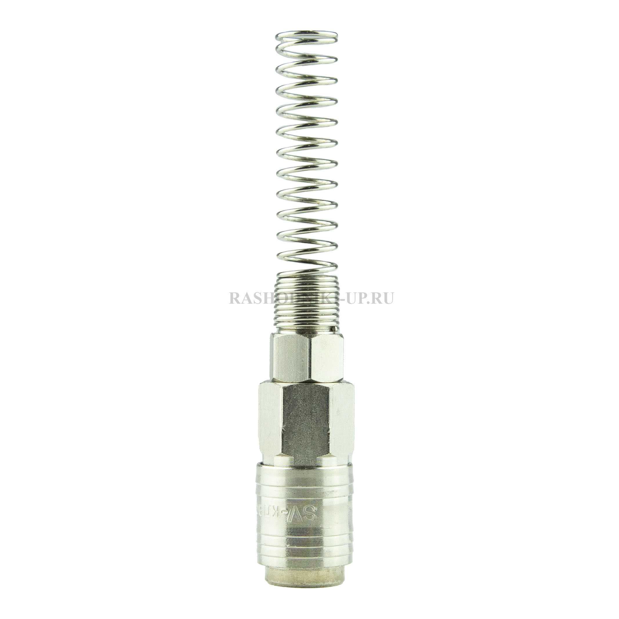 Фитинг Штуцер с пружиной для шланга используется совместно с компрессорным оборудованием для соединения шланга с пневмоинструментом. С одной стороны фитинг имеет — рапид папа, с другой стороны — пружина, которая предотвращает перегибы и деформацию шланга в месте соединения с наконечником. Созданная конструкция обладает высокой надежностью и герметичностью.
